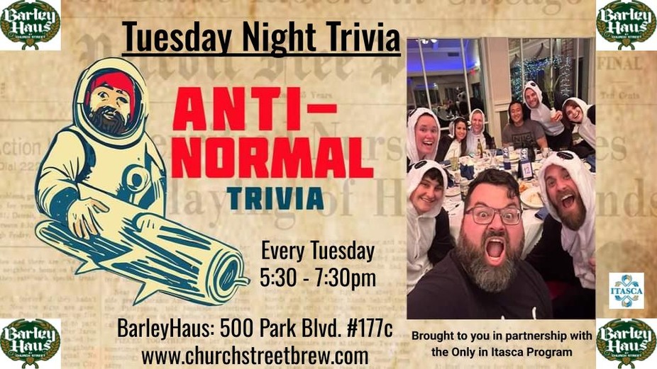 Join us every Monday Night for Anti-Normal Trivia! Free to play 6-8pm